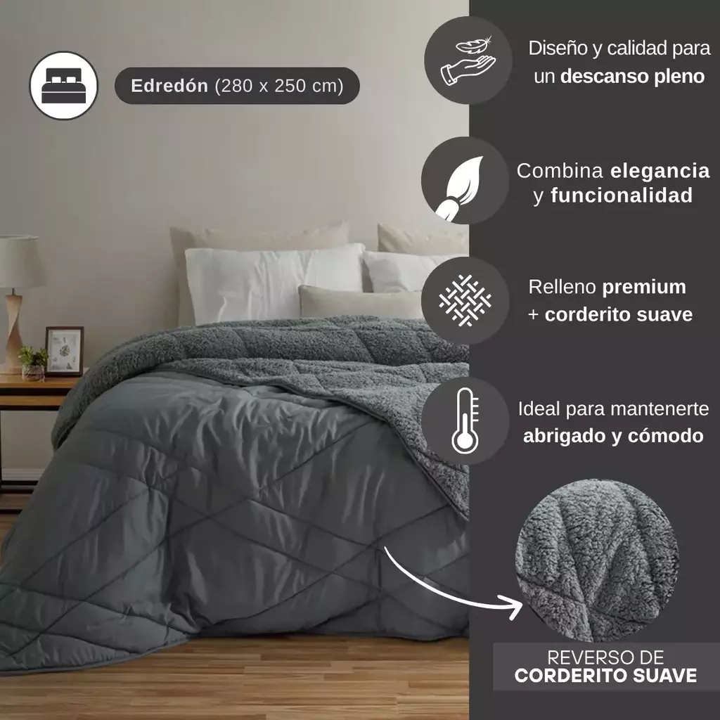 Dale a tu cama un toque de lujo y abrigo con este edredón Alcoyana de tamaño King. Con una combinación de microfibra premium y reverso de corderito, este edredón está diseñado para quienes buscan la máxima comodidad y estilo.