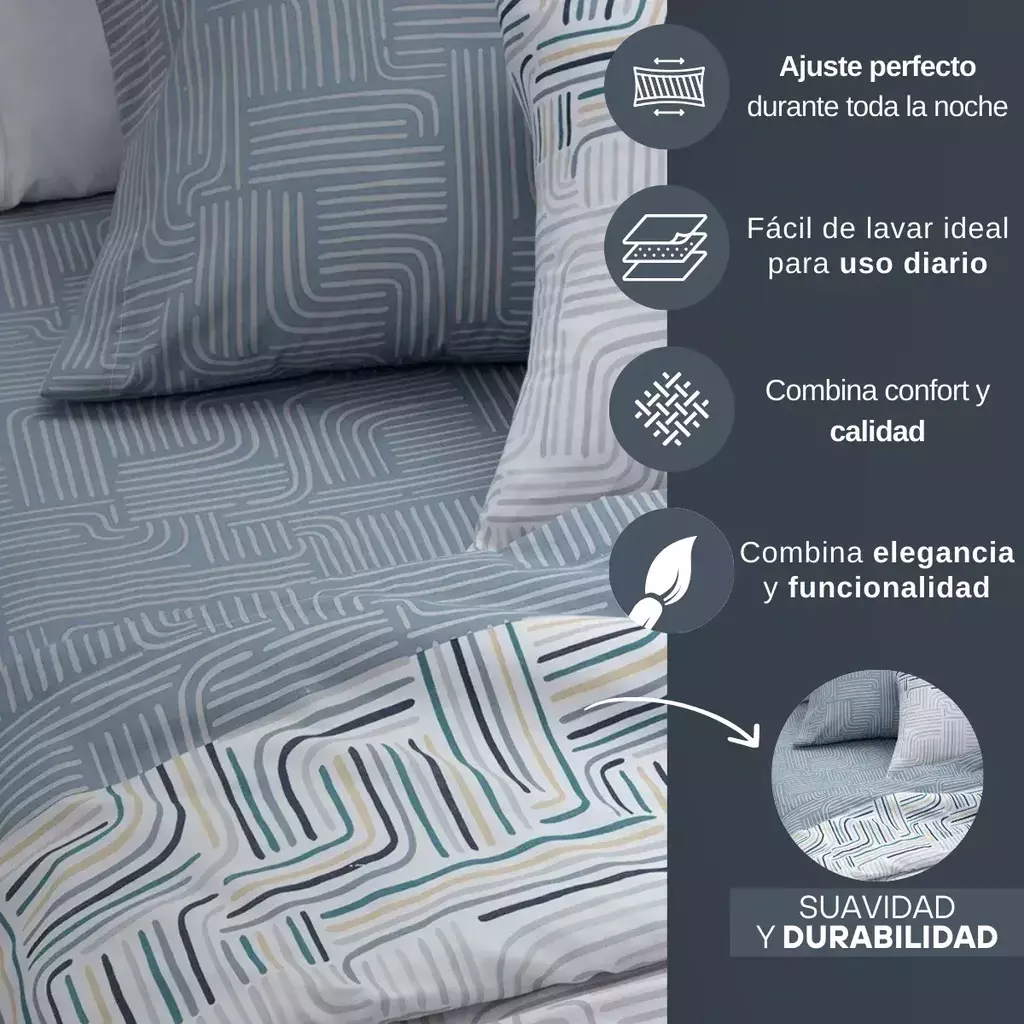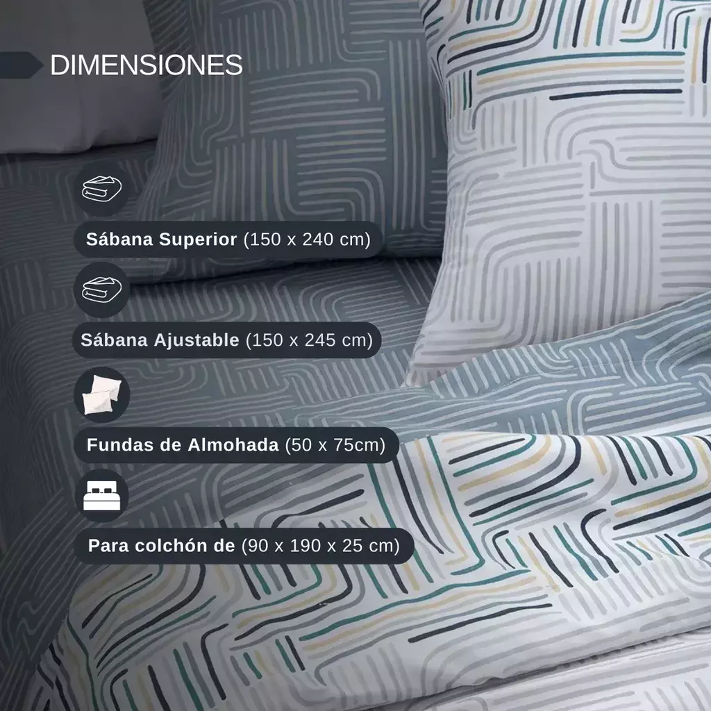 Disfruta de un descanso confortable con el Juego de Sábanas de Alcoyana, diseñado para ofrecer suavidad y durabilidad. Perfecto para colchones de 1 1/2 plazas, este juego combina la frescura del algodón y la resistencia de la microfibra premium, ideal para el uso diario.