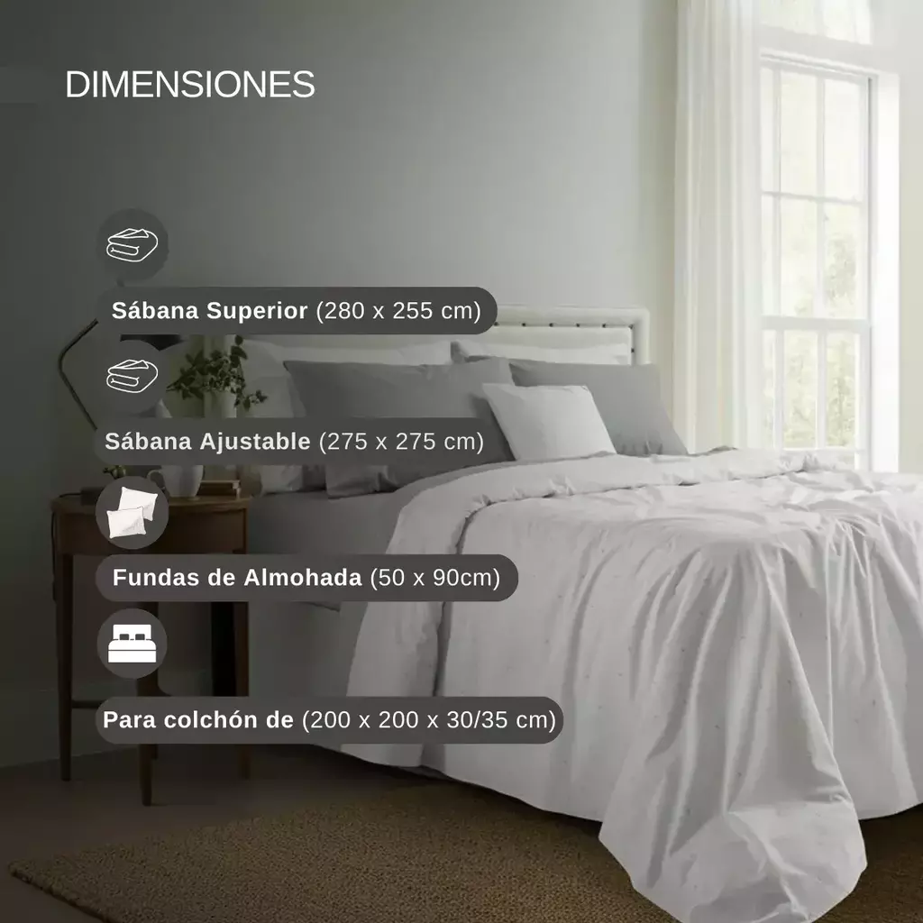 Disfruta de un descanso excepcional con el Juego de Sábanas King de la Línea Origen de Alcoyana. Diseñado para brindar la máxima suavidad y comodidad, este juego es perfecto para colchones de gran tamaño y está confeccionado en 100% algodón, asegurando una experiencia de descanso placentera.